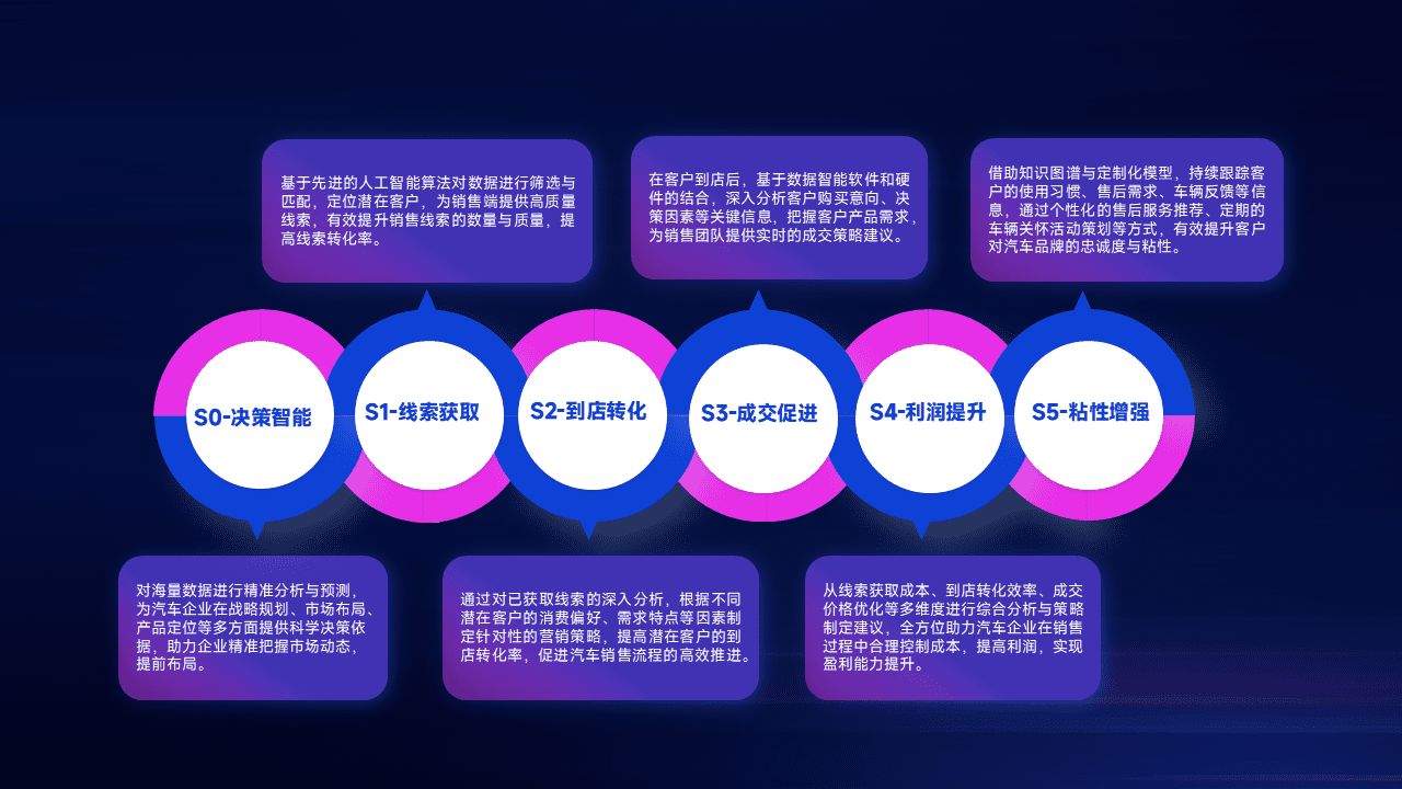 通过拓宽潜在客户来源、、、、优化线索分配并提高到店转化率,,以增强销售效率。。。同时,,利用线索数据不断优化分析模型,,,有效提升转化率,,,,扩大营销影响力。。。